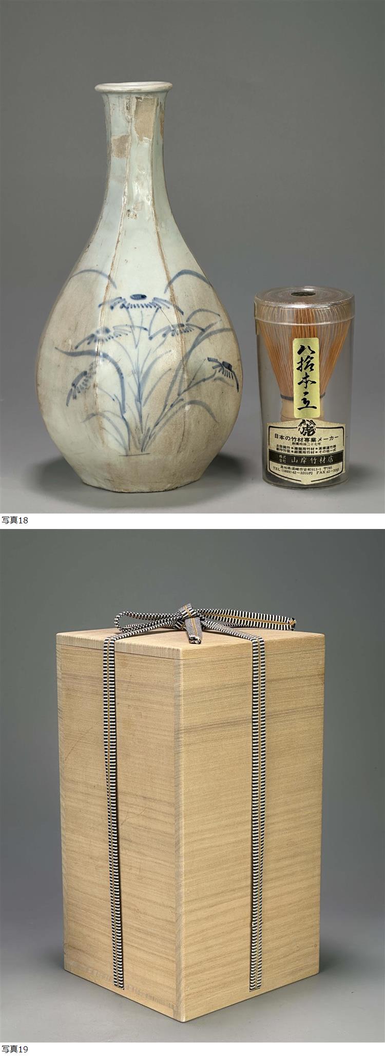 UJ5S82CG 朝鮮古美術 李朝時代 李朝 白磁 染付柳樹文面取瓶 花器 花入 古物保証 時代物 韓国美術 旧蔵出し 收藏