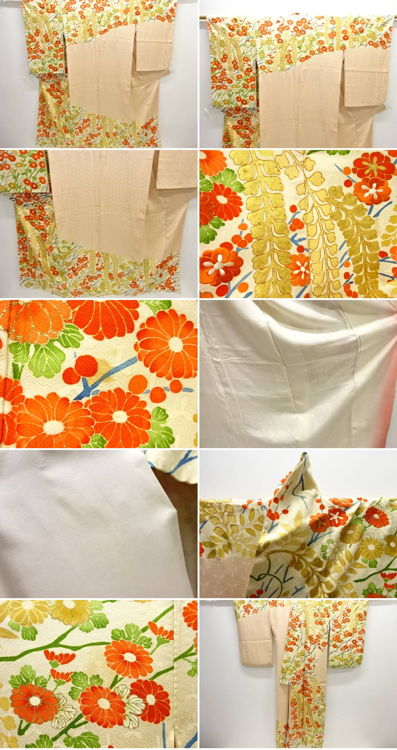 衿は広衿です。 胴裏は薄アクと薄ジミが有ります。 左前身頃の裾寄りにアクが有ります。 両胸元に薄ジミが有ります。 掛衿山に薄くすみと上部にくすみが有ります。 薄アクが有ります。 状態は良いです。 アンティークにご理解のある方ならお召し頂けますが、神経質な方等はご遠慮下さい。 採寸・検品:岩井・あかほし 撮影:宮野 素材は正絹です。 地色は淡いピンクベージュです。 お支払い方法、送料・手数料はストア情報よりご確認お願いいたします。 全国一律1300円。11000円以上で送料無料 ※8/12より送料が変更されています。ご理解の上ご入札ください。 複数ご落札の場合で個別に発送住所がそれぞれ異なる場合は、お手数ですが、別途メールでご連絡下さい。 以前と発送先が異なる場合、別途メールでご連絡下さい。 多少の時代シミ、くすみがある場合があります。 デジタルカメラやモニターの特性により色が忠実に再現できない場合があります。 ご理解頂いた上でのご入札お待ちしております。 アンティーク商品については「不良品」扱いいたしません。 記載のない状態がある場合もございますのでご了承下さい。 ご返品もお受け致しますが、送料、振り込み手数料は、お客様負担でお願いします。 |