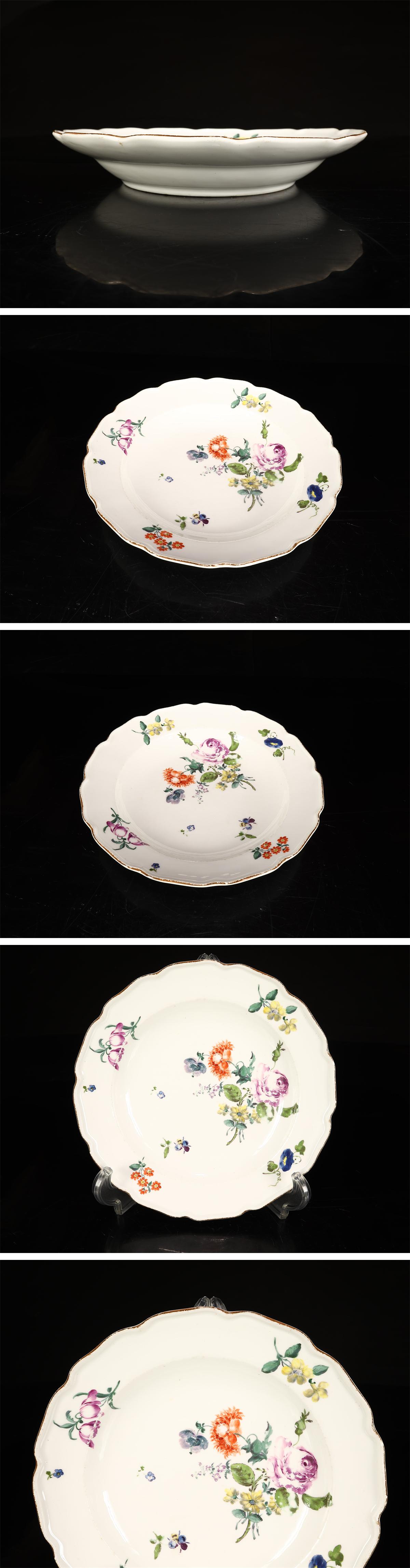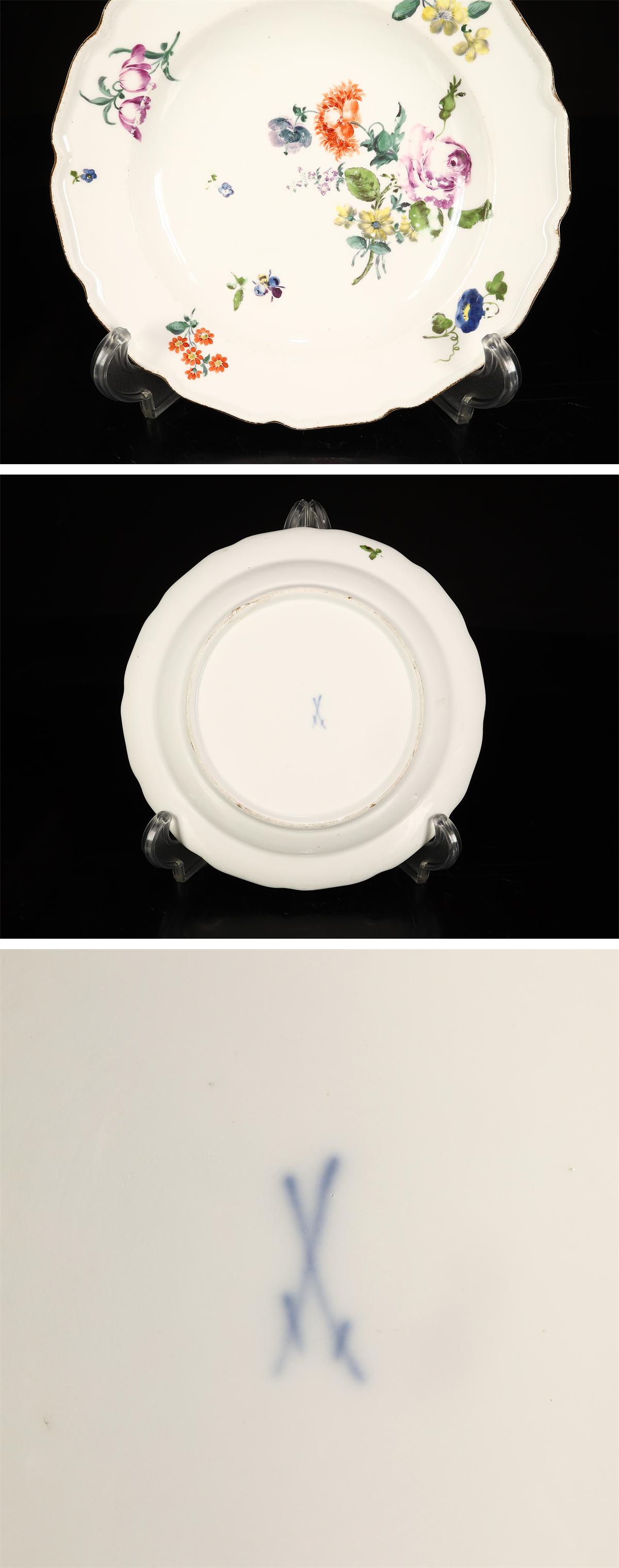 【吉】CL078 十八世紀 ドイツ王室窯 MEISSEN 【マイセン】 早期作 色絵花紋輪花皿 幅21.5㎝/高台の当たりや彩の落としあり! 收藏