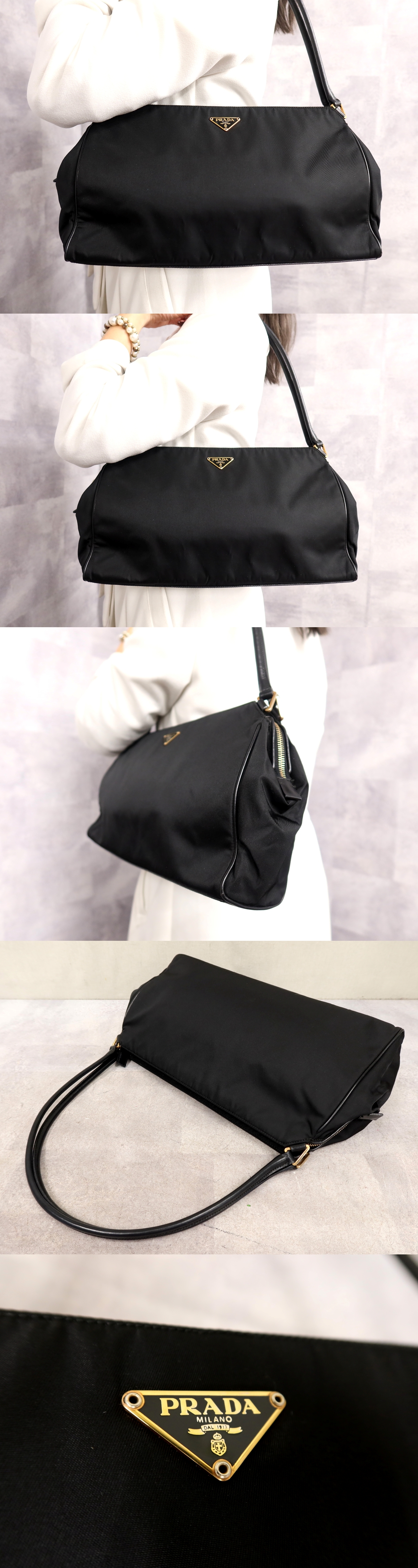 ●超美品●PRADA プラダ●三角ロゴプレート●ポコノ ナイロン カーフ レザー 本革●ショルダー バッグ●黒●G金具●イタリア製●Js63971 收藏
