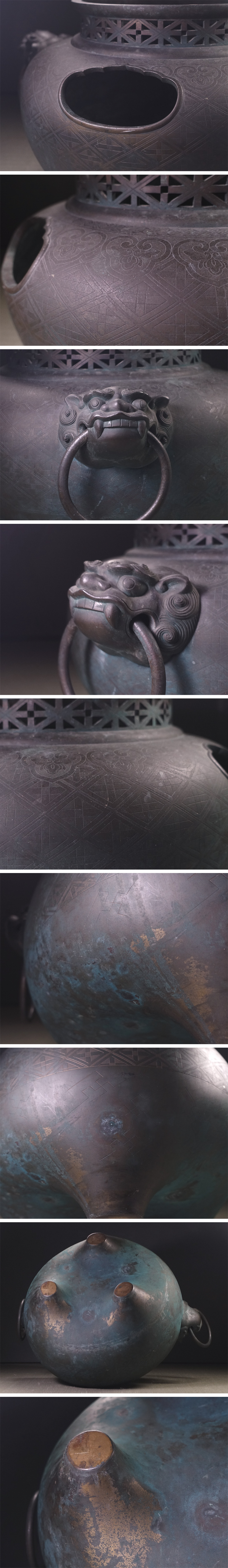 ∇花∇大名家の御茶道具 江戸時代 菱紋入唐銅茶道具一式 風炉釜・建水・杓立・水指・蓋置 貴重な皆具伝世品 收藏