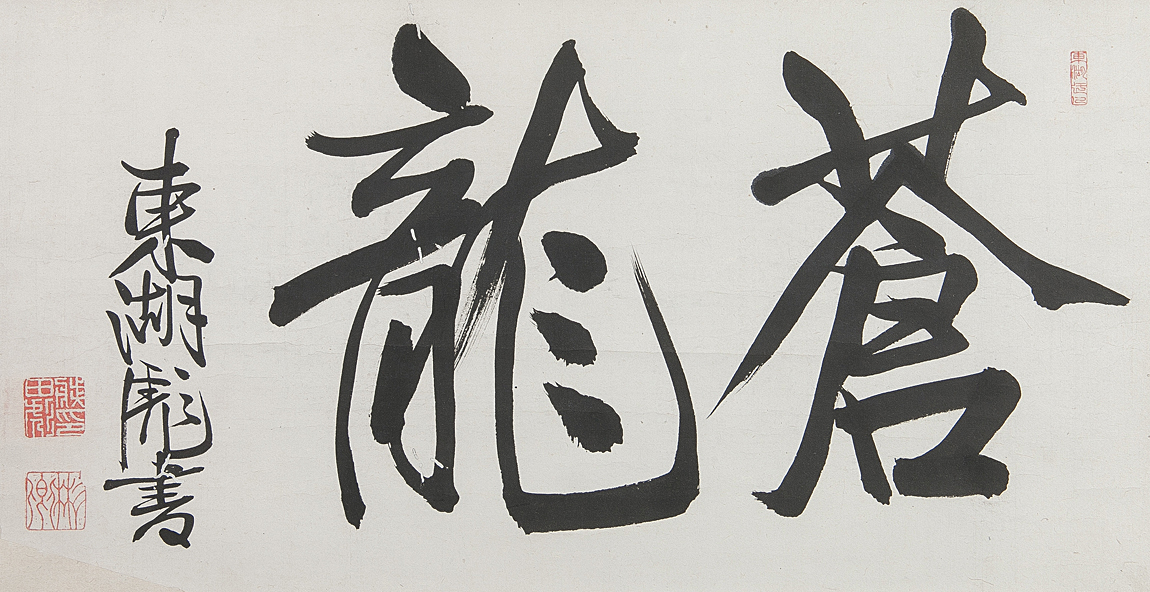 【五】幕末の水戸学者 藤田東湖 二字書 『蒼龍』 紙本 墨 掛軸 箱付 茶掛 真作 收藏