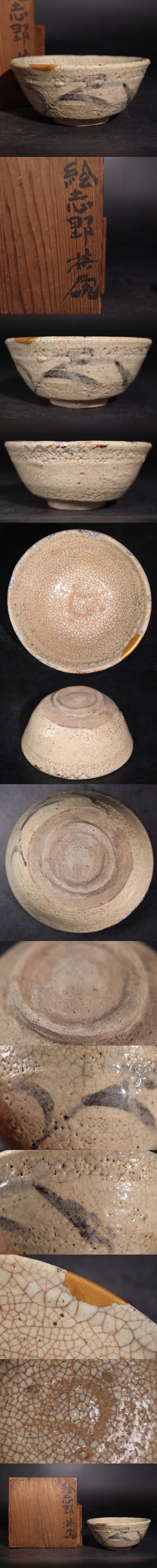 | 時代 絵志野 茶碗 金継ぎ 木箱付 / 志野 古志野 茶器 煎茶道具 煎茶飾 .G3520 |