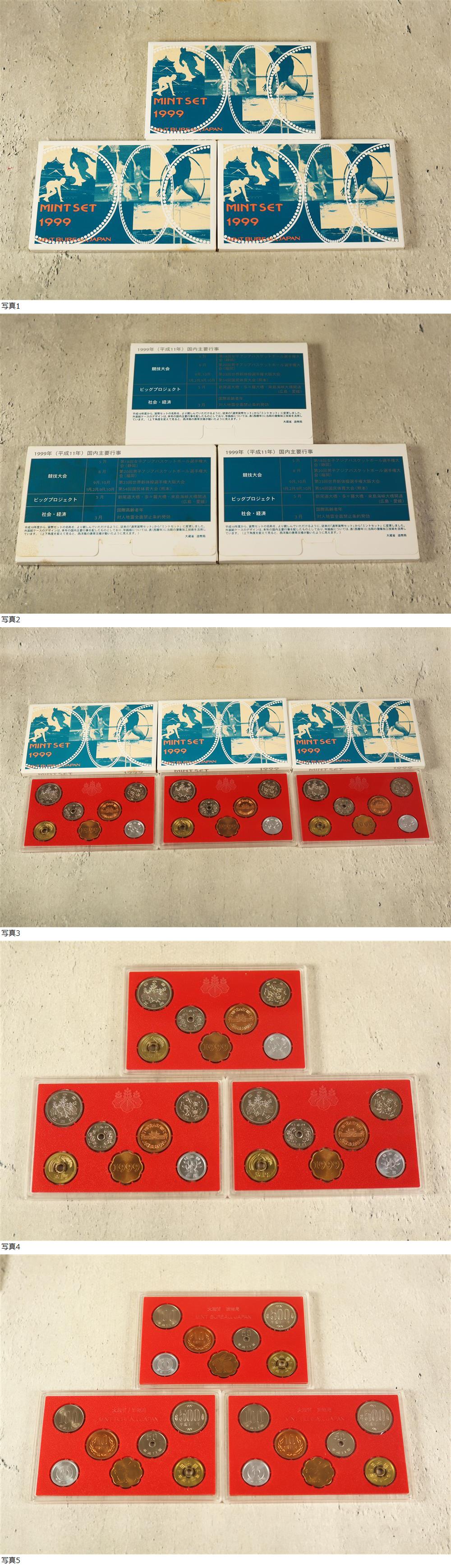 3個セット MINT SET 1999 貨幣セット 1999年 平成11年 造幣局 記念硬貨 の出品です。 ★配送方法 :ゆうパック60サイズ にて発送いたします。 ★完品をお求めの方は入札をご遠慮ください。 ★入金確認後、3日以内に発送いたします。 ★写真には写しきれない小キズやスレ等あるものとお考え下さい。 ★ご使用のモニター設定により色味が異なる場合があります。 ★ノークレーム・ノーリターンでお願いします。 ★ご入札後3日以内に決済を完了出来る方のみご入札下さい。