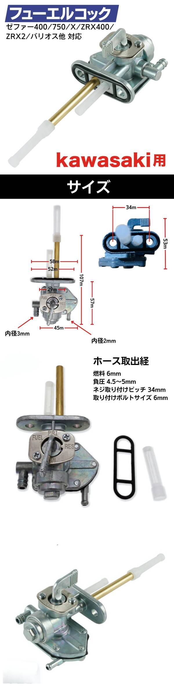カワサキ用 フューエルコック 燃料コック ゼファー400 X ZRX400 ZRX2 バリオス KZ400 汎用 互換品 負圧式 ガソリンコック 社外品 パーツ 收藏