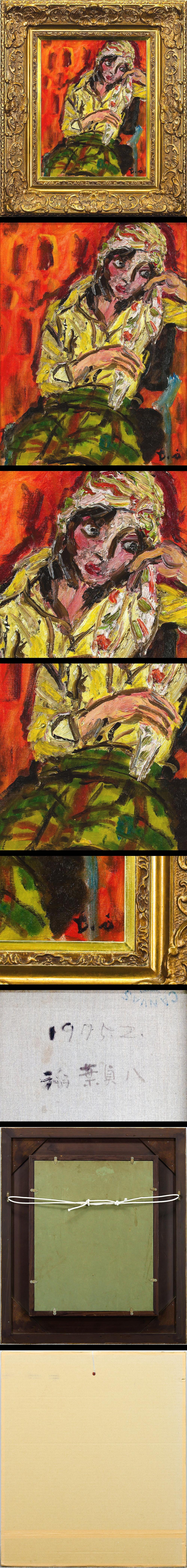 【真作】【WISH】稲葉貞八 油彩 6号 1975年作 燃える色彩の中で佇む女性像 #25123623 收藏
