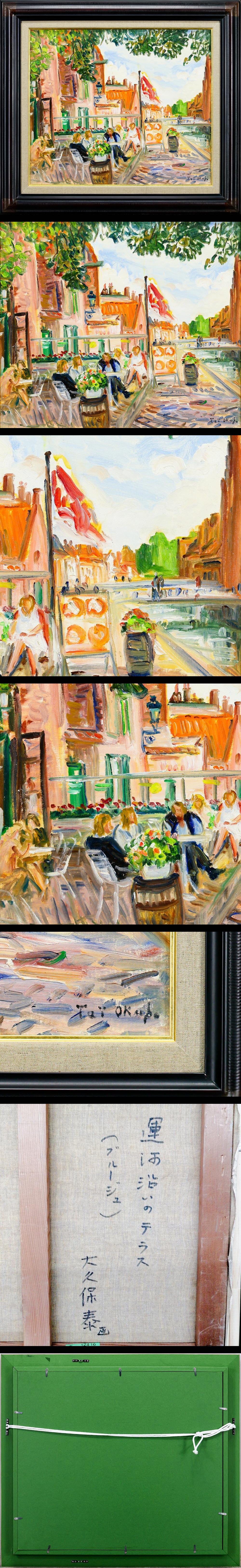 【真作】【WISH】大久保泰「運河沿いのテラス(ブルージュ)」油彩 10号 ◆色彩豊かな運河のひととき 〇独立美術協会会員 #25122919 收藏