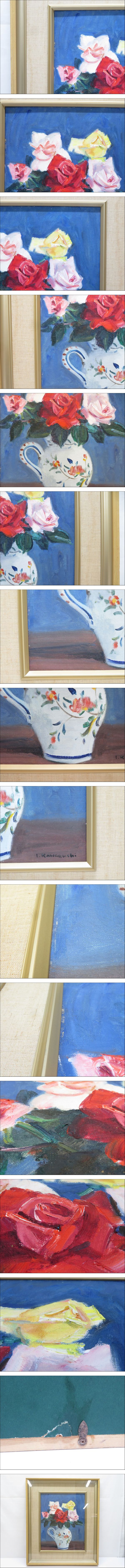 ◆◇【真作】 川口雄男 「ルーアン壺のバラ」 油彩画 静物画 ルーアン壷 薔薇 直筆サイン 額装 額寸/約61cm×約52cm◇◆ 收藏