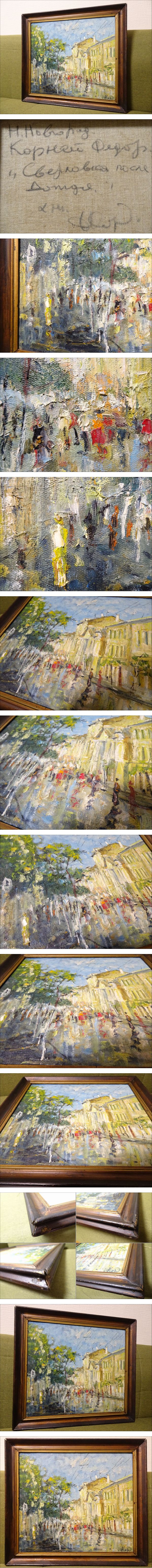 作者不詳 街並み 通り 油彩 額装 ロシア画家/ヴィンテージ | |||||||||||||||