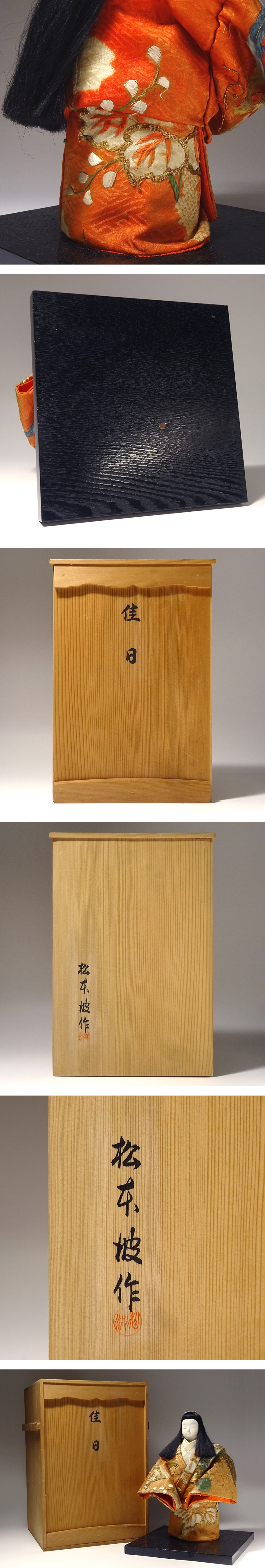 慶應◆京人形師【松本波】作 正絹金駒繍時代裂使用 創作人形 日本人形『佳日』全高32cm 共箱付 收藏