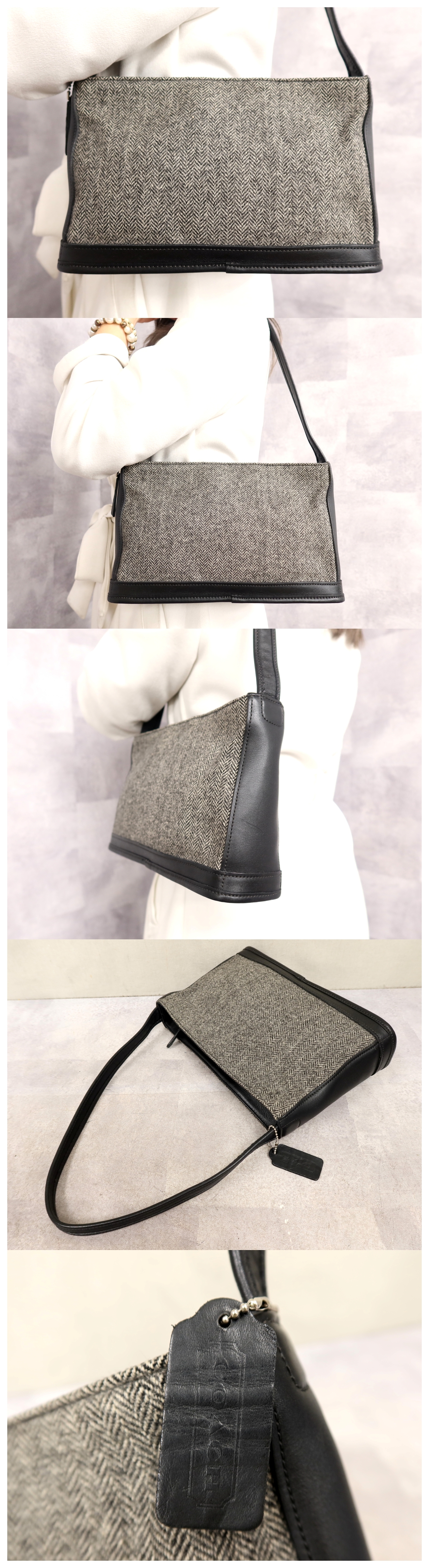 ●超美品●COACH コーチ●6128●ヘリンボーンツイード カーフ レザー 本革●ショルダー バッグ●黒●シルバー金具●肩掛け●Js64293 收藏