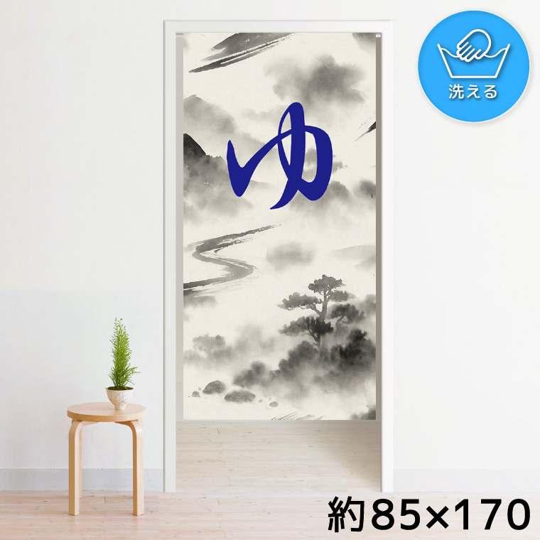 のれん ロング 170丈 洗える 目隠し 間仕切り 約85×170cm ミラーレース 転写プリント 温泉 風呂 入口 NOR-B196 水墨画 ゆのれん ブルー 收藏