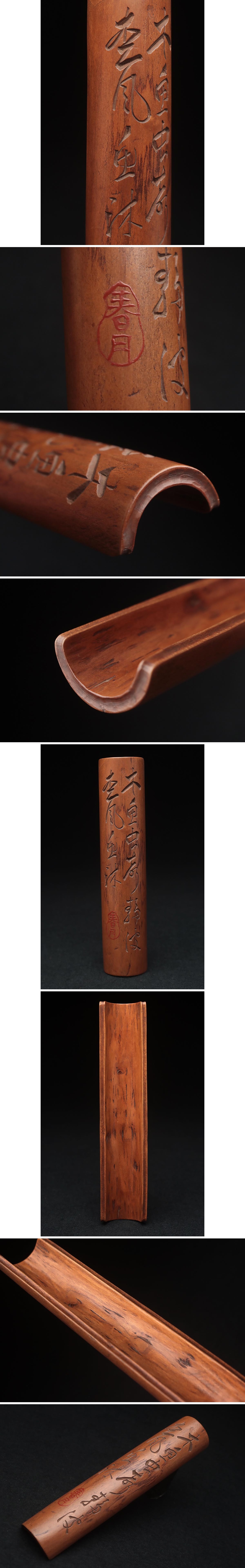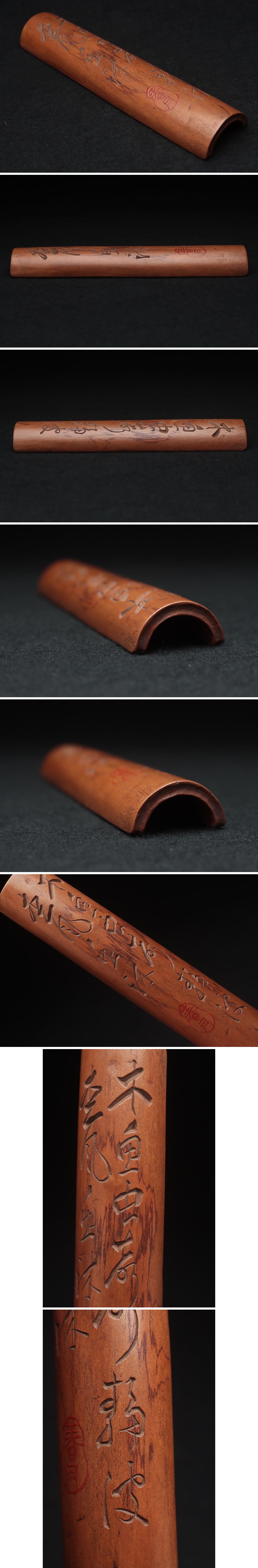 | ◆ 時代【春月作】木造 煎茶 茶合・木彫漢詩彫図茶合 全長16cm・木雕漢詩圖茶量・仙媒 茶具 茶器 古美術 煎茶道具 ◆