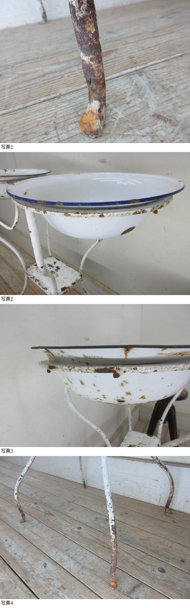 古いアイアンのタオル掛け付き手洗い台P137 アンティーク家具ウォッシュスタンド琺瑯洗面台レトロ花活け店舗什器カフェ什器古家具無垢材 收藏
