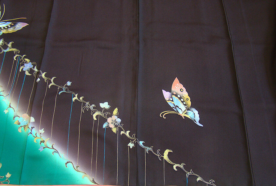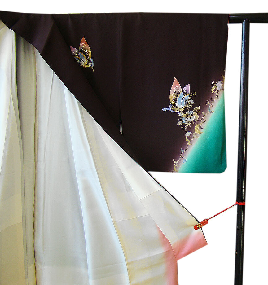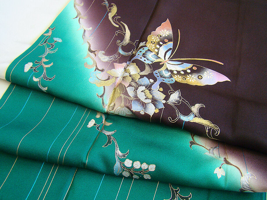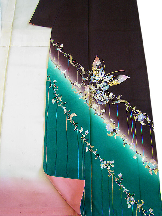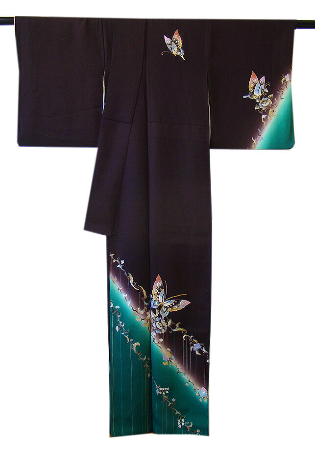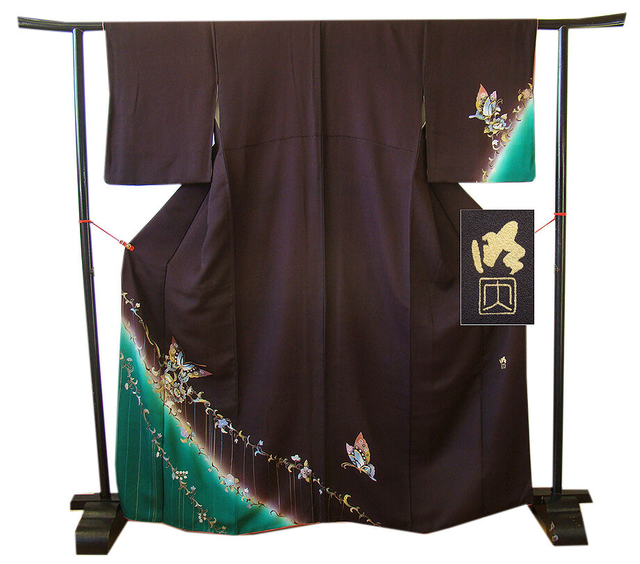 | 商品説明 | こちらのお品は「袷」ですので10月から5月までお召頂ければと思います。 とてもしなやかで柔らかな手触りの着心地良い重めの上質な極上一越地の生地、 渋い紫黒色地に裾にかけて青緑色ぼかしに、蝶々や花草等の染柄に豪華な金彩加工仕立て、 気品に満ち溢れた彩りが正統派のお着物として一枚は欲しい逸品の素敵なお着物です。 八掛は桃色(正絹)、作家の落款入り、幅広い年代の方にお召頂けます。 |