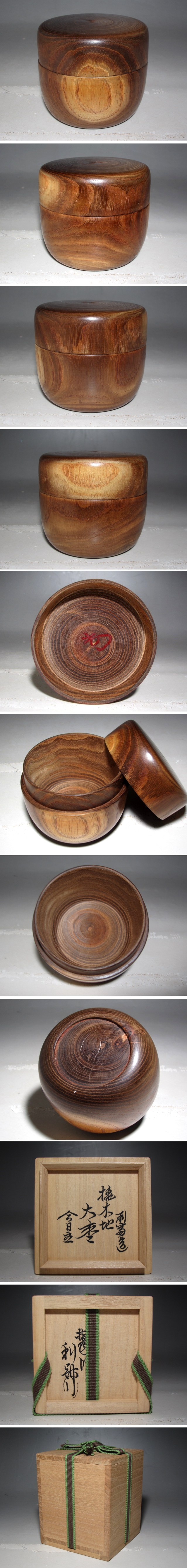 千家十職駒沢利斎 槐(えんじゅ)木地大棗 裏千家淡々斎花押の名品☆z169 收藏