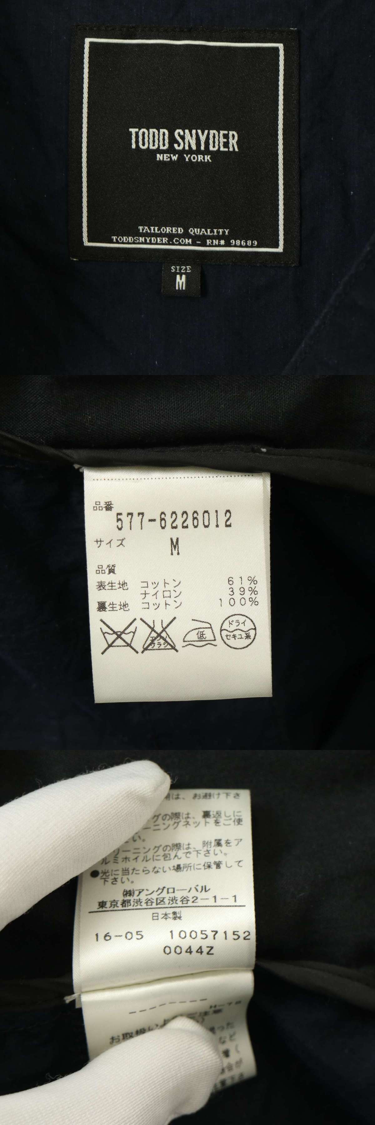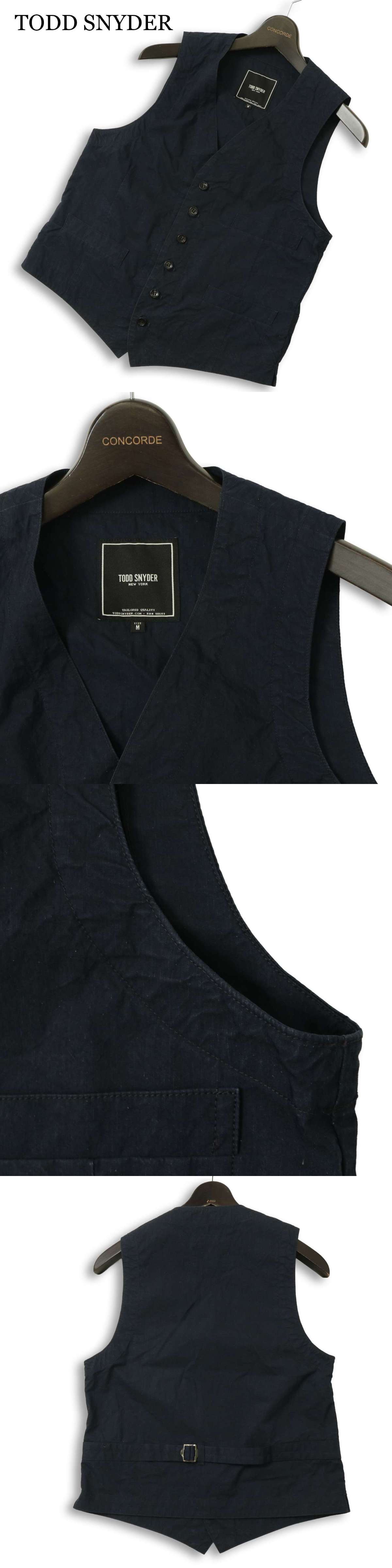 TODD SNYDER トッドスナイダー 通年★ コットン ナイロン ベスト ジレ Sz.M メンズ 紺 ネイビー 日本製 收藏
