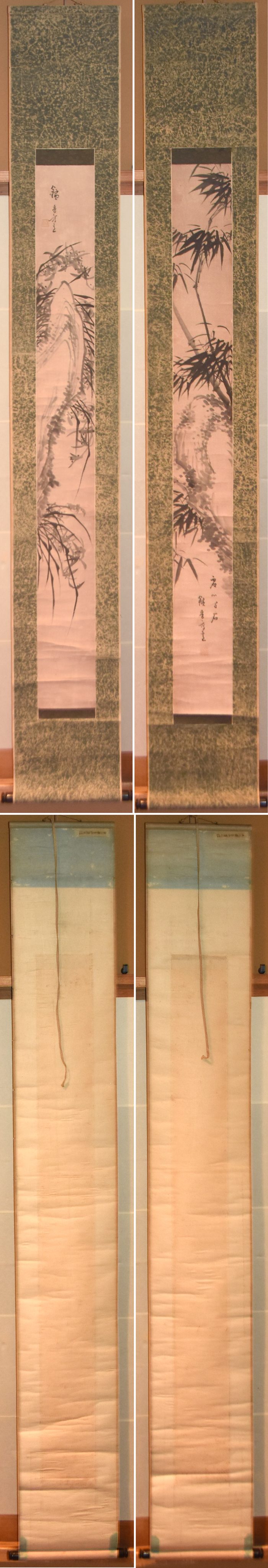 【真作】黒川鐵香 蘭竹 双幅 軸 一対(2本) 紙本 肉筆 掛軸 四君子 古画 古書画 古美術 書画 絵画 日本画 軸 掛け軸 u1957o 收藏