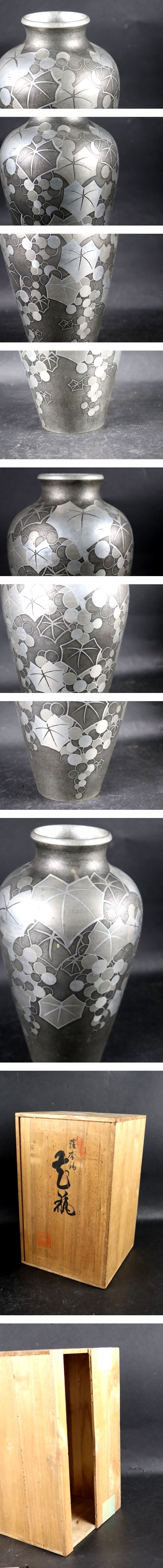 薩摩 星山堂製 正錫 草花文花瓶 花入 2040g 箱付 時代古玩 收藏