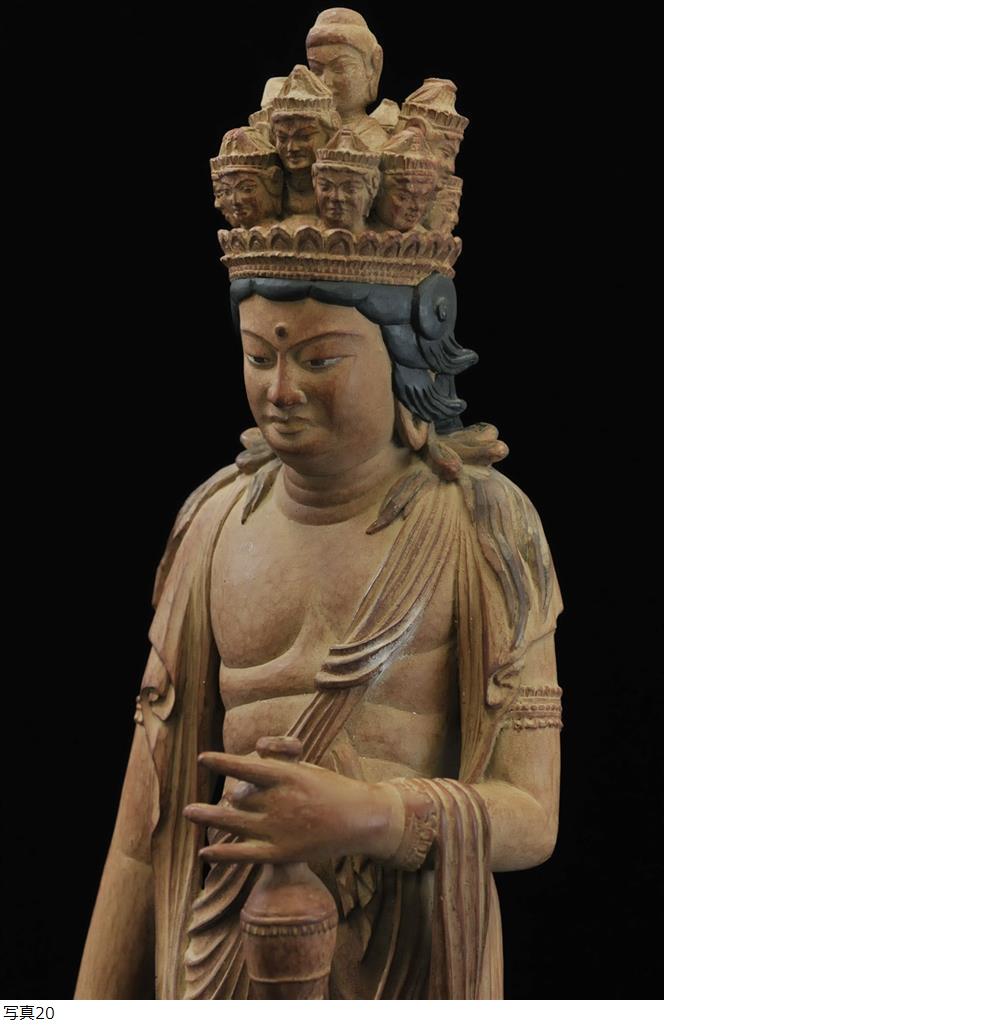 仏教美術 木工彫刻 十一面観音立像 高さ:約57㎝ 重量:3.5㎏ 箱無し ※修復痕有 菩薩 細密 仏 東洋 03412091-2 收藏