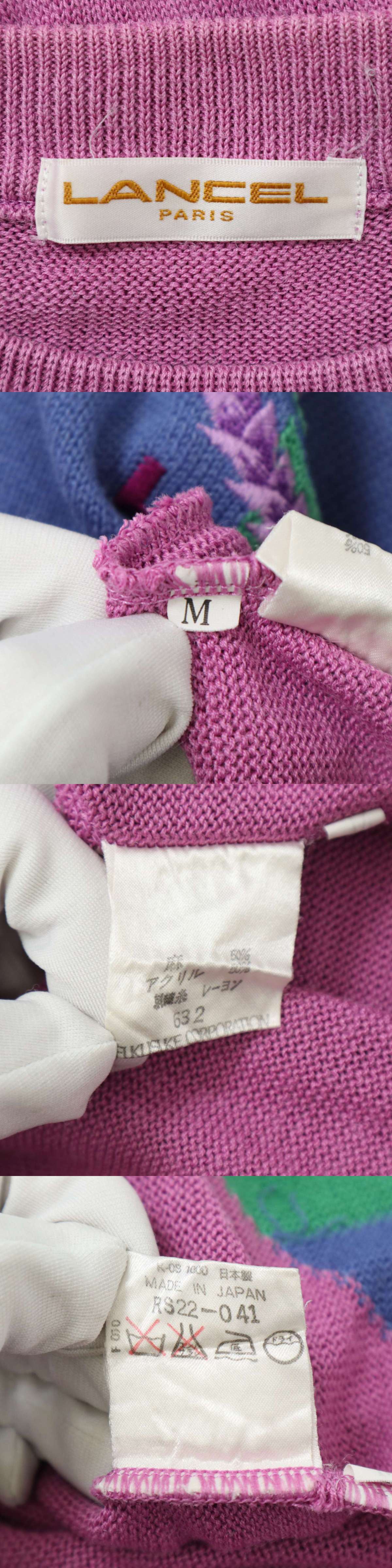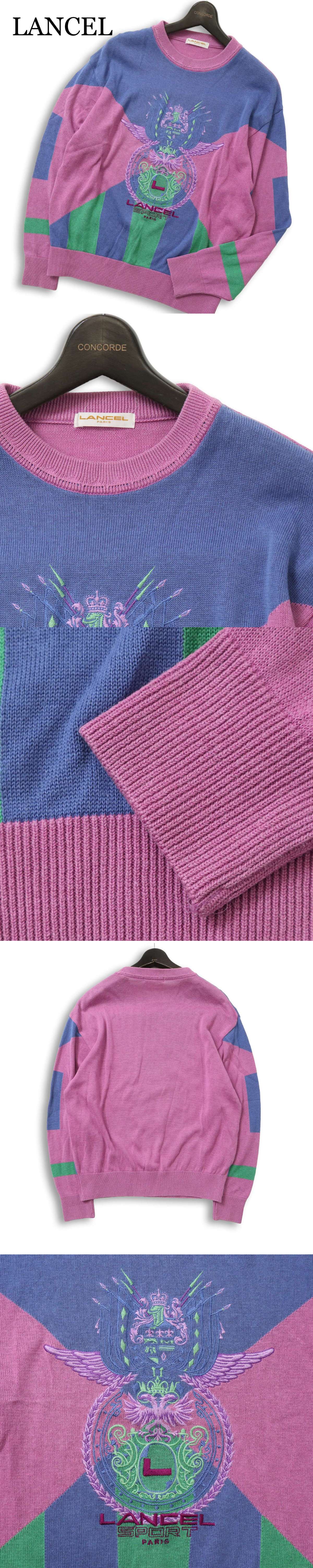 LANCEL ランセル 春夏 豪華! 刺繍デザイン★ 麻 リネン ニット セーター Sz.M メンズ 日本製 レトロ 收藏
