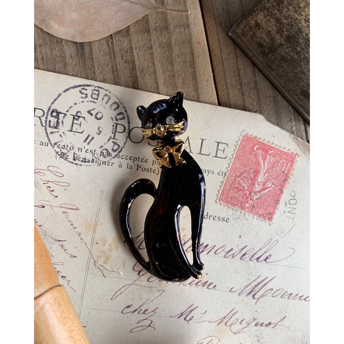 フランス 1950-60s 黒猫 ねこ ブローチ アクセサリー ピン 古着 ジャケット ピンズ ヴィンテージ アンティーク 1 收藏