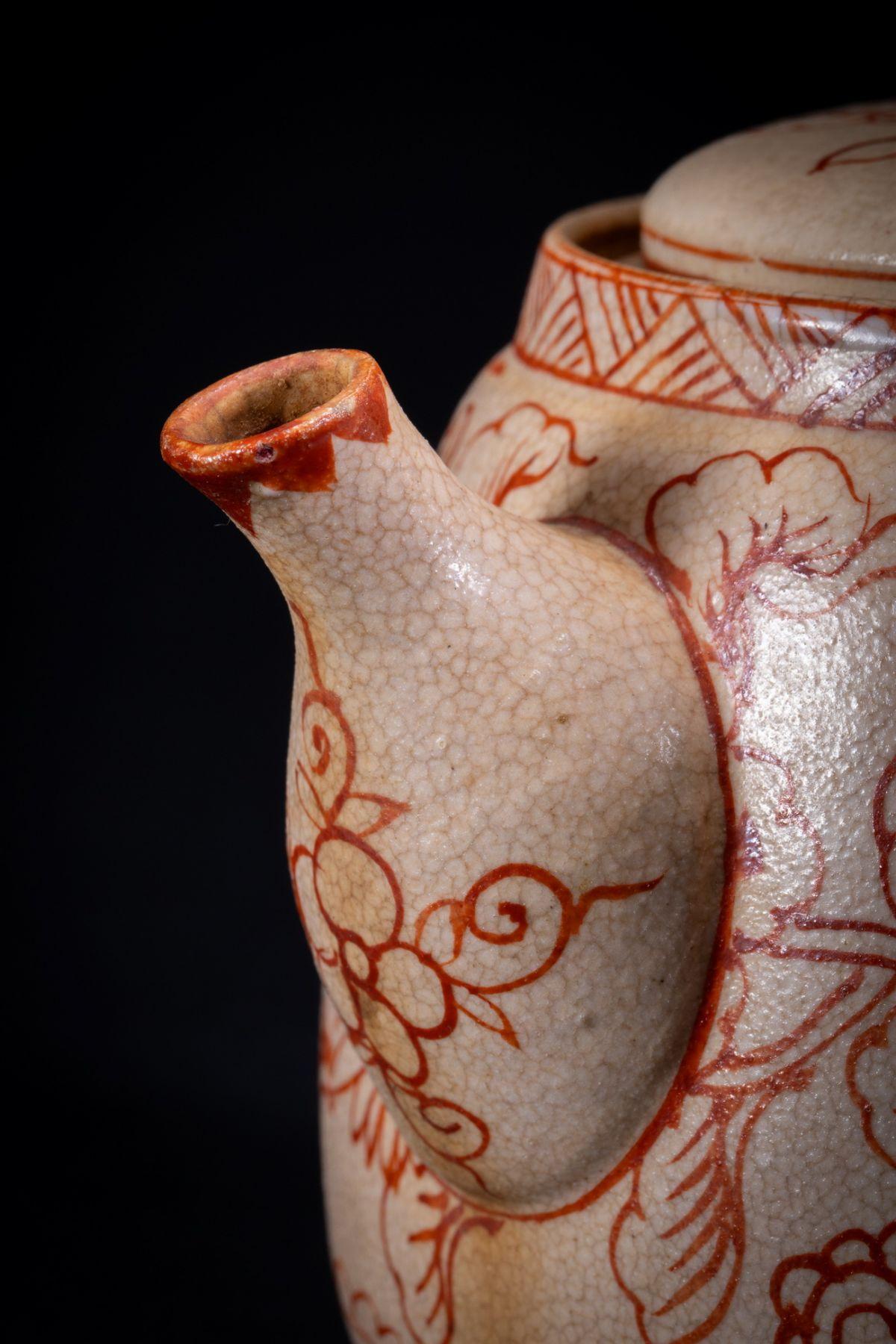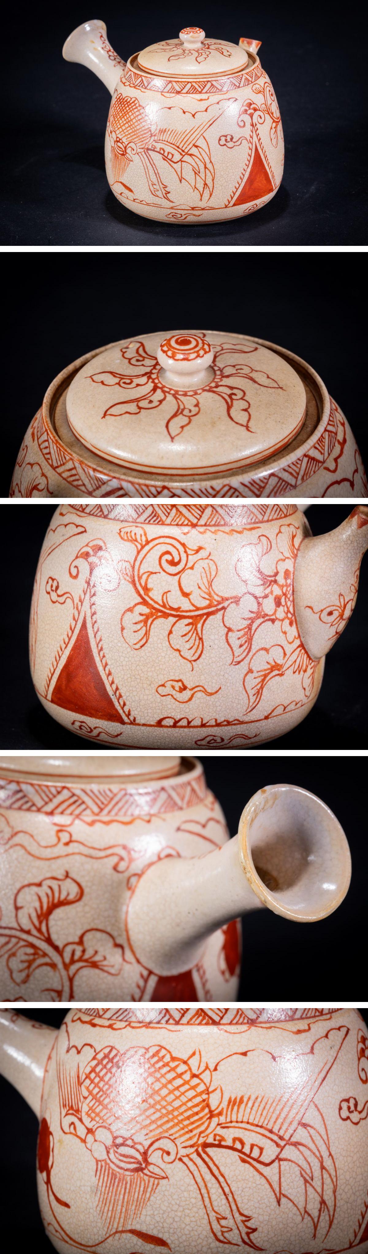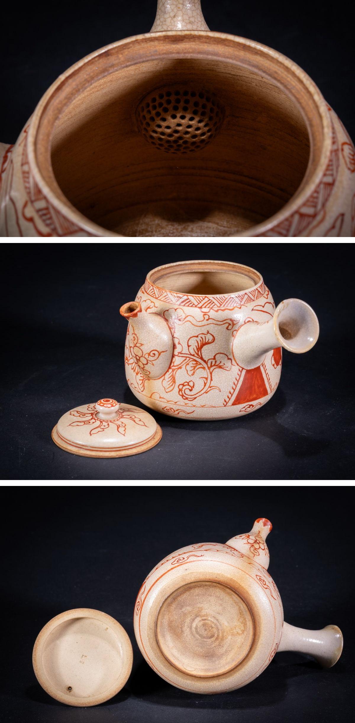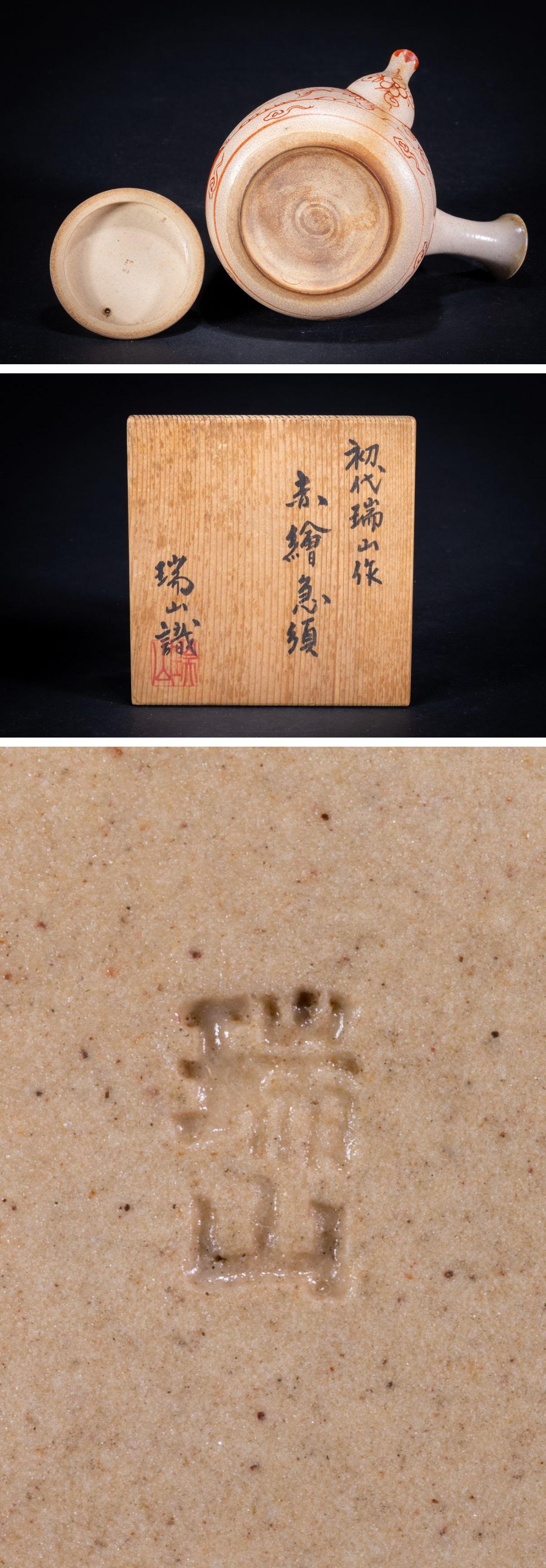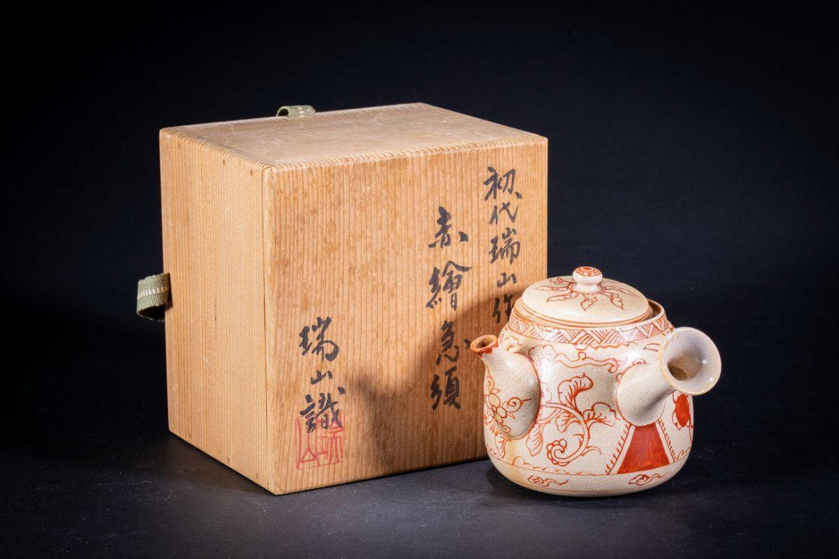 【珍品堂】1円から 京焼 清水焼 瑞山作 赤絵急須1客 共箱 茶道具 煎茶道具 時代物 古美術 骨董品 H8.6cm N-A17-CG1 收藏