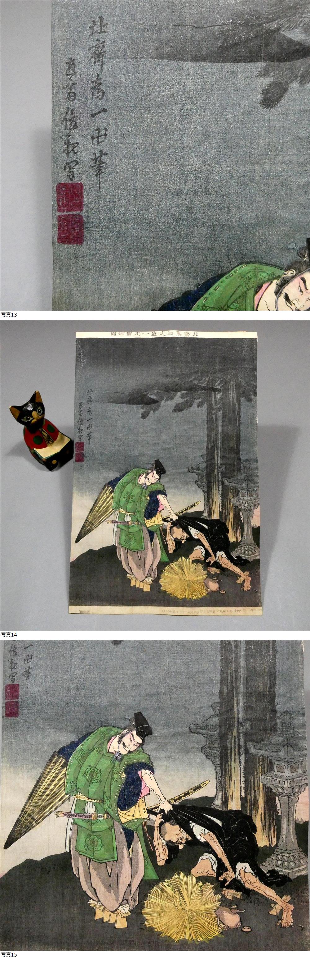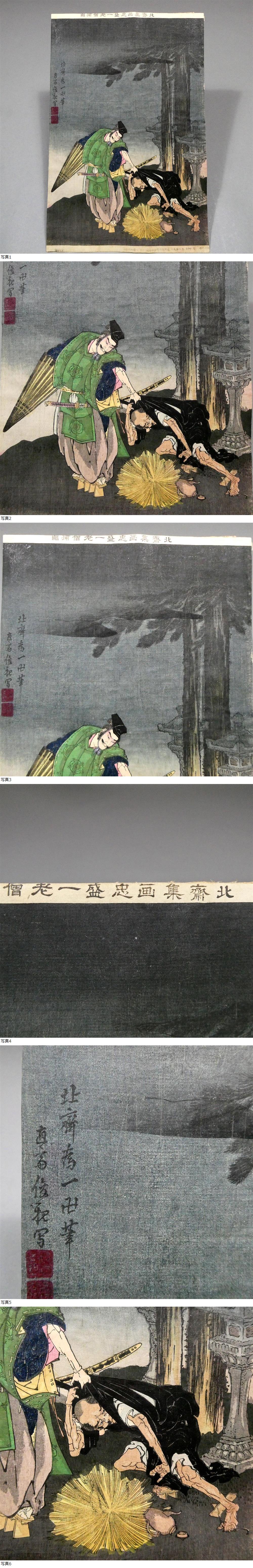 ■ 蒔田俊親 明治18年 木版浮世絵 「北斎集画忠盛一老僧捕図」 葛飾北斎の筆致を明治の技巧で再現 ■