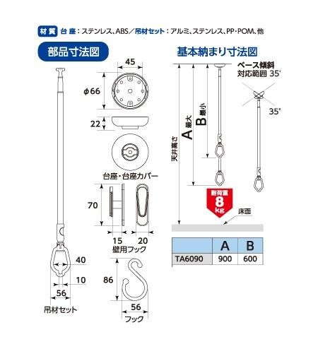 | 天井に付けた台座からポールが取り外せるので、使わない時はスッキリ!簡単操作で伸縮可能です。 ●必ず物干し竿を使用してください。ロープやひもを掛けて使用すると、竿掛け本体の破損や故障の原因になります。 ●本製品1本の耐荷重は8kgです。それ以上の重量物を掛けると、竿掛け本体の破損や故障の原因となります。 ●2本/1セットで使用する場合も、物干し竿を含めて8kgの耐荷重以内で使用して下さい。 ●竿掛けの高さ調整は、正しい操作方法で操作してください。無理な操作は、竿掛け本体の破損や故障の原因となります。 ●年に2~3回水洗いをして拭きとってください。 a. 汚れが軽い場合は水で濡らした布で拭き、空拭きをしてください。 b. 汚れがひどい場合は中性洗剤を薄めた液で汚れを落としたあとで、洗剤が残らないようによく水洗いをして拭きとってください。 ●電動工具のみでの施工はやめてください。必ず、ネジ類の締め終わり手前で止めて最後は、手回し工具でネジの締り具合を確認しながら、取付けを行ってください。ら、取付けを行ってください。 |