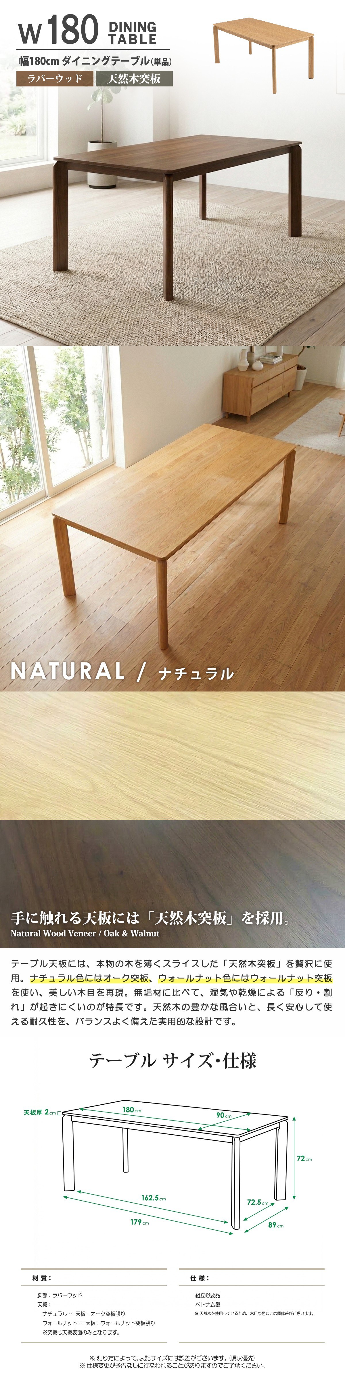 ダイニングテーブル 180cm 単品 木製 天然木 突板 6人掛け 食卓 幅180 奥行90 シンプル ナチュラル 收藏