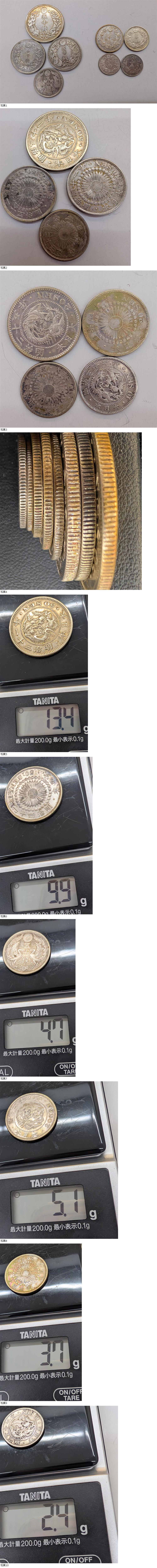| ◆商品説明◆ | 【商品名】 #8698A【8枚セット】銀貨 おまとめ 50銭銀貨 20銭/10銭銀貨 TOTAL52グラム 【詳細】 黒ズミ ヤケ 小傷の有るものがございます | |