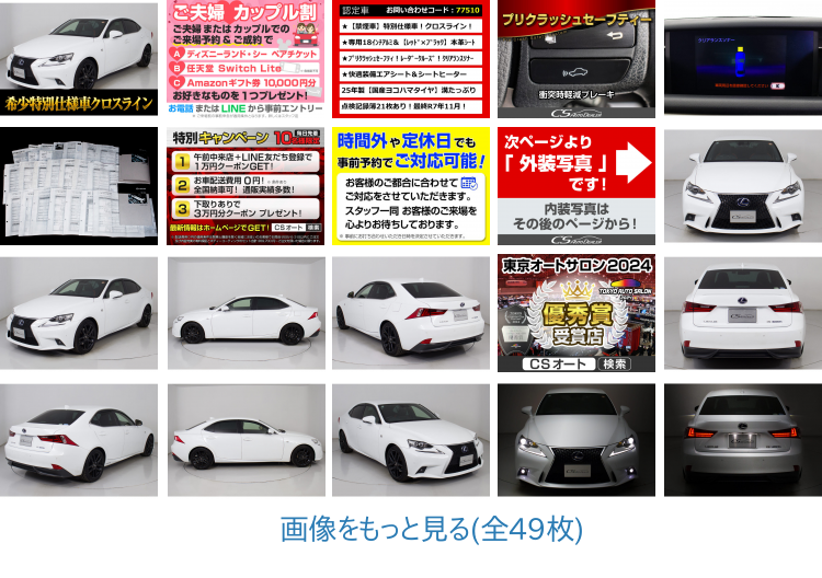 【諸費用コミ】:平成27年 レクサス IS300h Fスポーツ クロスライン 禁煙 記録簿X21 收藏