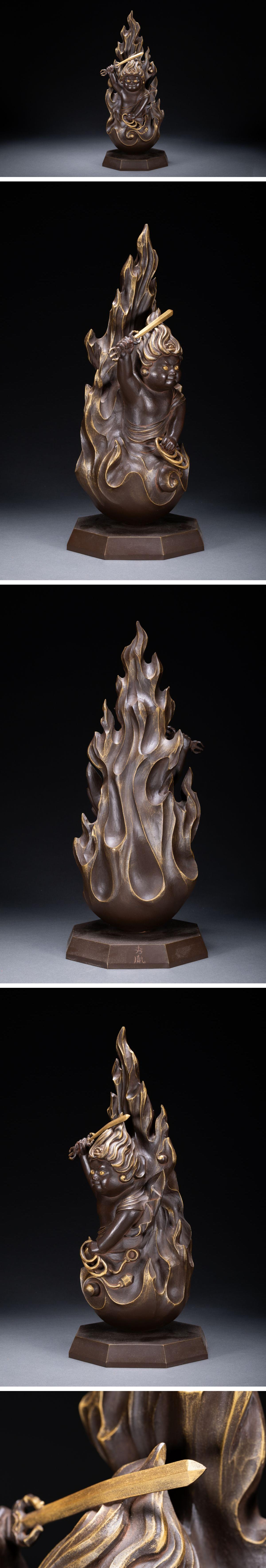 【清】関西某オークション購入 時代物 藤崎秀胤作『わらべ不動』造像 青銅器 当時物 時代コレクション0225-67S9