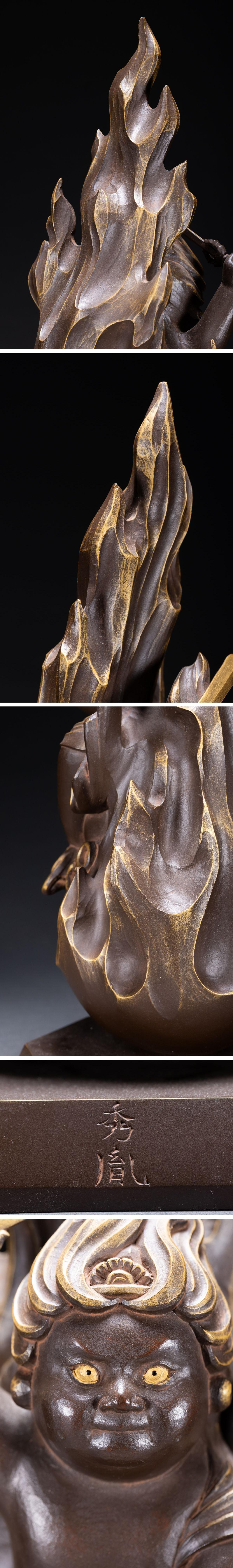 【清】関西某オークション購入 時代物 藤崎秀胤作『わらべ不動』造像 青銅器 当時物 時代コレクション0225-67S9 收藏