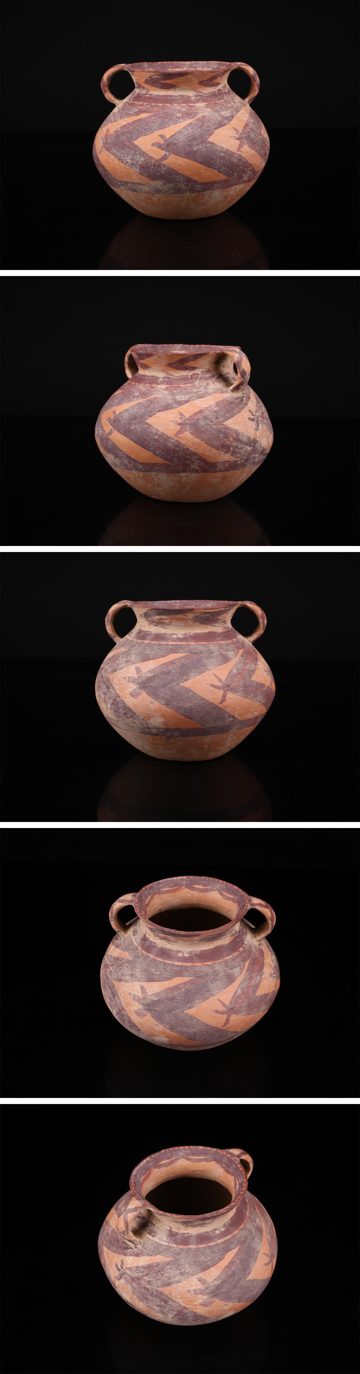 【吉】CQ563 土器 中国古代 【アンダーソン】 彩陶 双耳壷 高12.5㎝/時代の汚れありy! 收藏