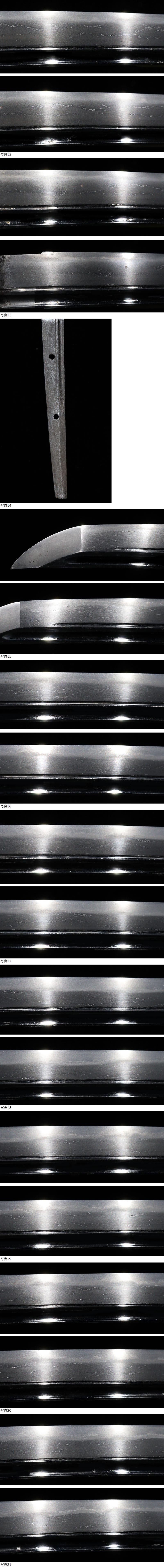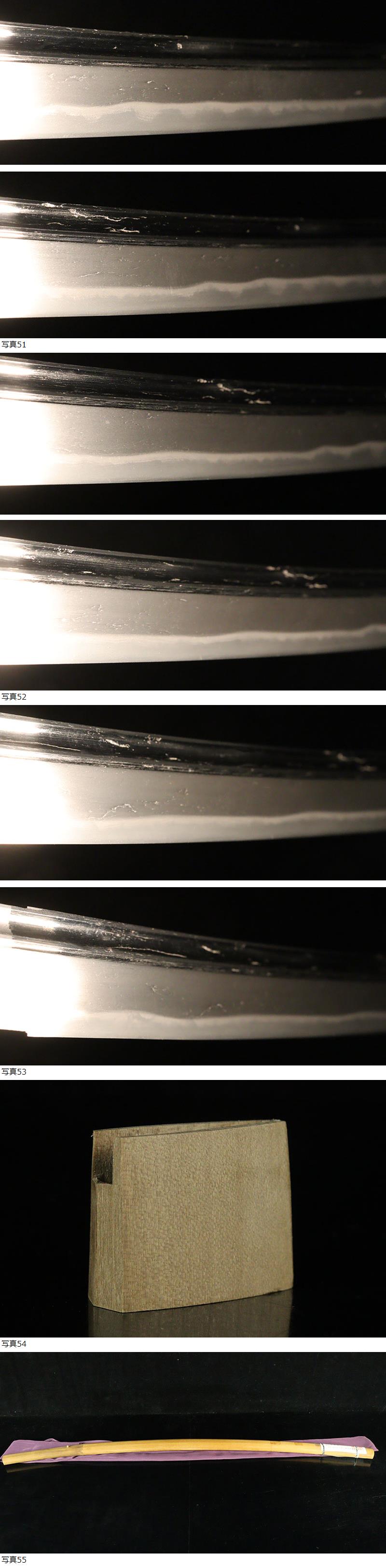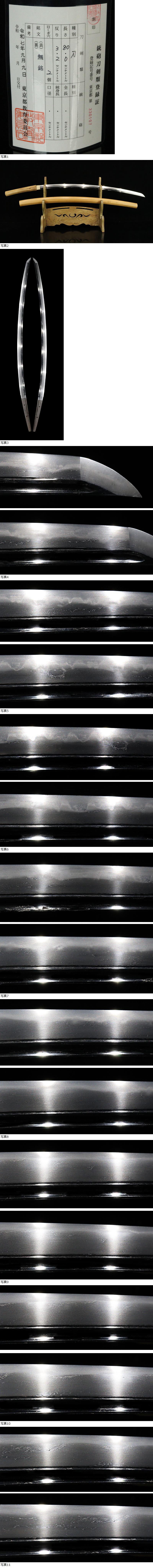 | ■刀剣のサイズ表示について 元幅・・・焼出し付近を測定しております 先幅・・・横手筋付近を測定しております 元重ね・・・焼出し付近の厚みを測定しております 先重ね・・・横手付近の厚みを測定しております (多少の誤差はご容赦ねがいます) ■銃砲類のサイズ表示について 全長・・・銃身先から台木尻までを測定しております 銃身・・・台木を除いて金属部分を測定しております (多少の誤差はご容赦ねがいます) 当社が出品する刀剣類は、入手した時の状態のまま出品しております。 ハバキ、小道具等も当社で調整したり付け替えたりはしておりませんので、合わせではないかというクレームは一切受け付けません。 刀身の疵も隠すことなく載せておりますので写真をよくご覧になってご入札ください。 疵に関して、説明がない等のクレームは一切受け付けません。 写真ではわかりにくい部分は質問欄やお電話でお問い合わせください。 但し、説明欄に表記のない刃切れに関してのみ返品やご相談に応じます。 ※ご落札しご購入されお手元に届いてから20日以内に 登録証に記載されている各都道府県の教育委員会にご連絡し 登録証の所有者変更を必ず行ってください | |||