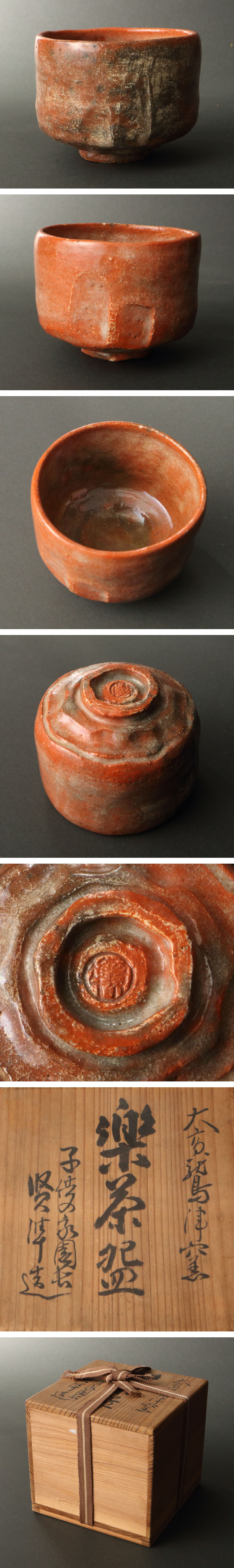 【深和】服部賢準 大高鷲津窯 赤楽茶碗 共箱 保証品(余技作家 茶道具 抹茶碗 楽焼 赤茶碗 明忠院 禅僧 禅宗 曹洞宗 名古屋 半筒茶碗) 收藏