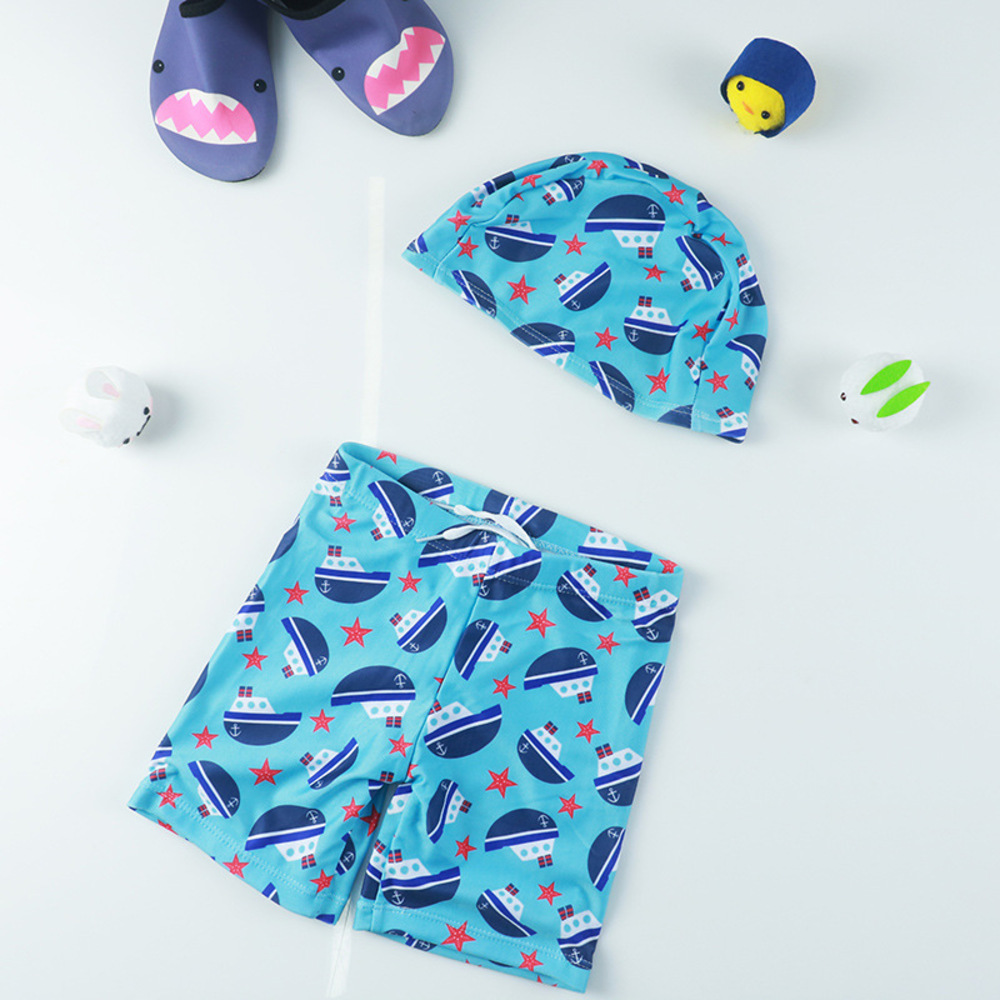 ☆ フネ×ブルー ☆ 85-95cm ☆ キッズ 男の子 スイムパンツ yswim5058 ベビー 水着 男の子 キャップつき 2点セット スイムパンツ パンツ 收藏