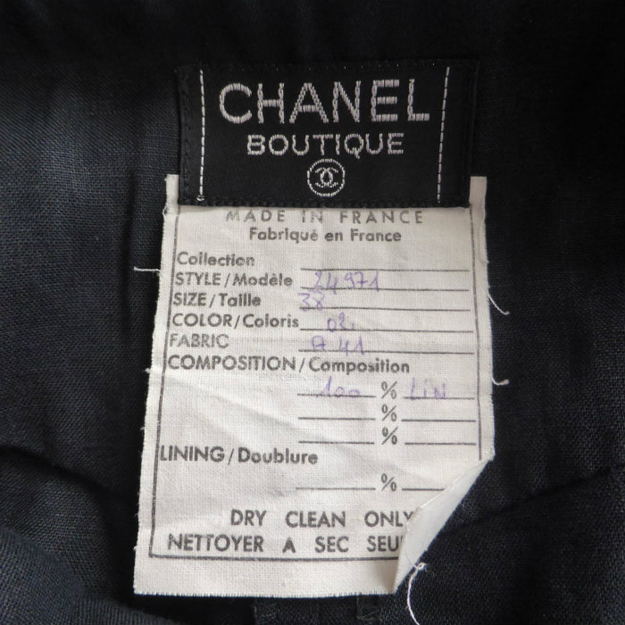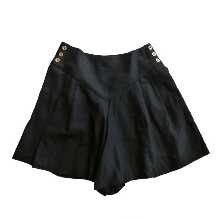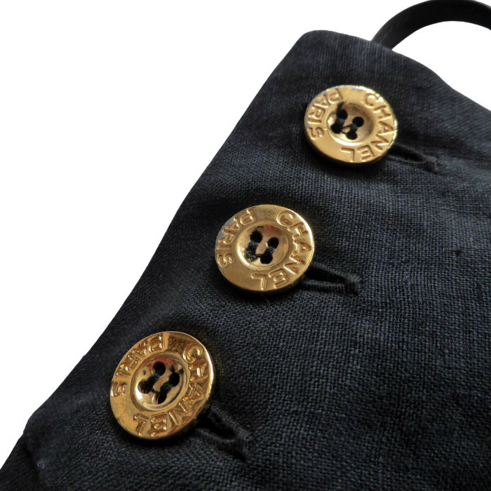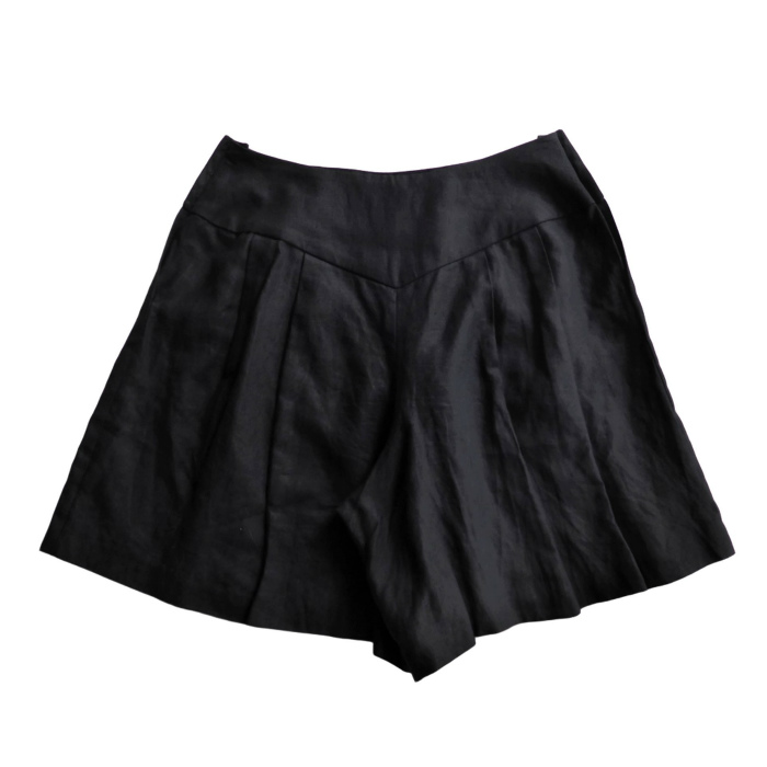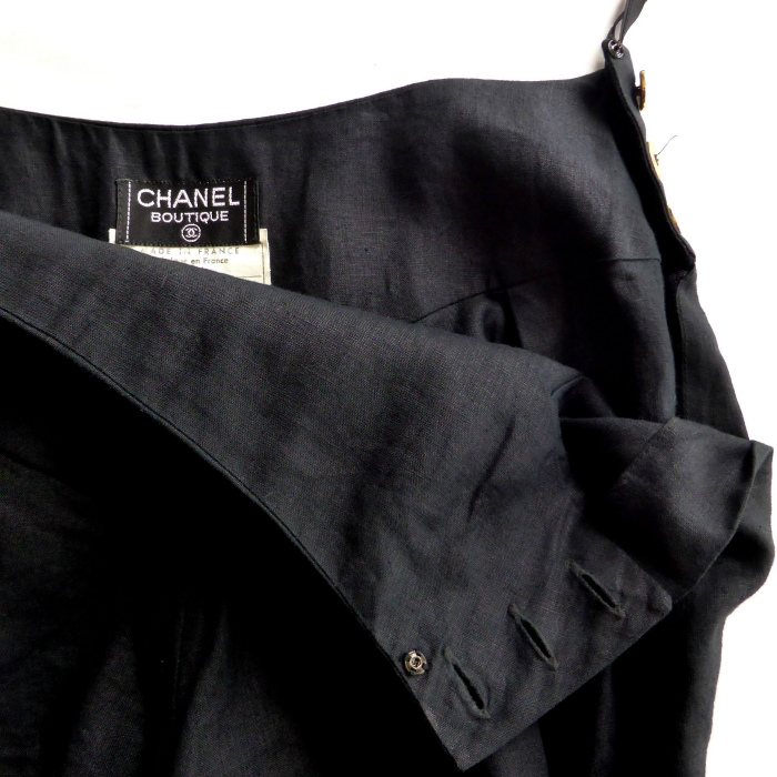 | シャネル(CHANEL) リネン 2タック キュロット パンツ 金ボタン ヴィンテージ #38 ブラック ウェア(中古) |