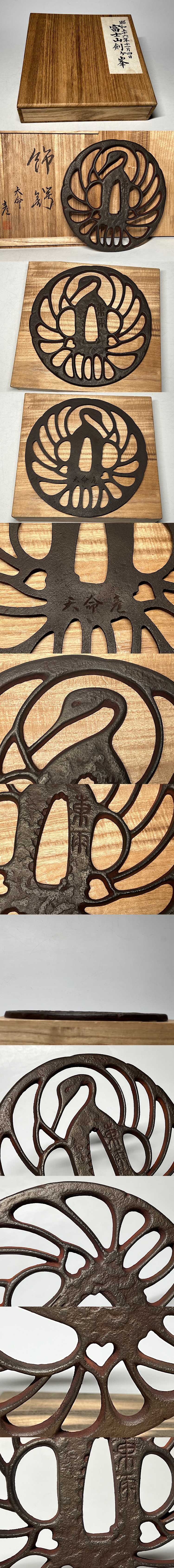 天命彦 飾り鍔 大型鍔 径:21.7 重さ:950g 共箱 ◆商品詳細 寸法(約):21.7x20.4x0.7(高×幅×厚さcm) 重さ:950g ※寸法に若干の誤差が生じる場合もございます。 汚れ、箱にシミ、蓋に少し反りがありますので、 ご承知の上入札お願いします。 状態等画像にてご確認の上ご入札よろしくお願いいたします。 ◆発送先等のご連絡とお支払いについて ※発送先等のご連絡 落札時から48時間以内にお願い致します。 ※お支払 かんたん決済の期限内にお願い致します。 複数点落札時にまとめて取引の場合(72時間内)に、 まとめて取引の取引手順(落札者方の操作)を参考にお願い致します。 梱包したサイズを測って、地方によって送料を決めますので、よろしくお願いします。 ◆掲載画像について ※画像は現物を撮影しておりますが、照度、遮光、モニターによっては実物と 色目が異なって見えることがありますのでご注意ください。掲載画像では確認 できない傷や汚れがある可能性もございます、あくまで 中古品であるということをご承知の上、御入札をお願い致します。 ◆補償について 商品到着後はすぐに状態の確認をお願い致します。 商品の破損等がございまし たら、箱や梱包材など全てそのままの状態で保存し、お早めにご連絡ください。 (到着日から一週間以上経過、梱包材の廃棄済み等の場合、保証は致しかねます のでご注意ください。) ◆返品について 思っていたイメージと違う、などのお客様主観による返品はお受けできません ので、予めご了承ください。ノークレーム、ノーリターンでお願いします。届 いた商品が商品説明と著しく異なる場合(寸法、キズ記載ミスなど)のみ承り ます。早めにご連絡ください。 ◆注意事項 当方の希望価格と隔たりがある場合は、終了前にやむなく取下げさせて頂く場 合がございます。 ※商品ご落札翌日から4日間以内にご連絡が取れない場合は、入札取消の処置を 取らさせていただく場合がございます。 ※評価の悪い方は取り消す場合がございます。 ※原則として当方の不備以外のキャンセル・返品・返金は受け付けておりません。 以上の点を予めご了承頂いた上で、入札・落札お願い致します。 ◆発送方法 ▼ゆうパック(補償あり/追跡あり) 梱包後のサイズ:~約80cm ※送料全国一律1200円 (但し北海道、沖縄、離島は+500円いただきます。) 発送元は静岡県となります。 ( 商品の組み合わせによっては同梱をお断りさせていただく場合があります。) ※大型商品について 郵便局の規定を超える商品の場合は、佐川急便またはヤマトでの発送となります。 |