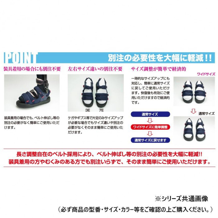 | 長さ調整自在のベルト採用により、ベルト伸ばし等の別注の必要性を大幅に軽減。装具着用の方やむくみのある方でも別注いらずで、そのまま簡単にご使用いただけます。 |