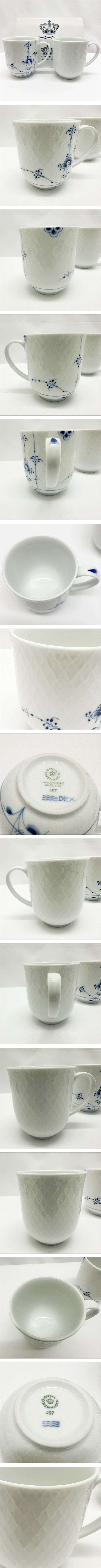 1円~ロイヤルコペンハーゲン マグカップ ブルーフルーテッド B&W PALMETTE MUG 2個 收藏