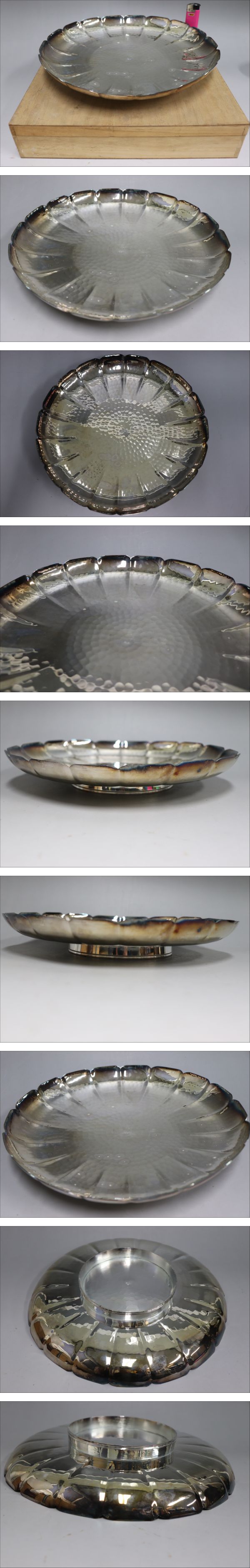 | 商品説明 | 商品名 時代 純銀製 輪花大皿 594g 古美術品 磁石反応無(材質不明) 付属品:合わせ箱あり。 サイズ 高さ4㎝、口径28.5㎝、底径13.3㎝。重さ594g 状態: 時代のスレ、変色、小疵あり。 ※銀刻印がある為タイトルに記載してありますが材質は不明です。メッキ、白銅の可能性を踏まえて画像にてご判断の上、慎重に入札してください又、古美術品の為、純銀保証はございませんので、自己責任において入札にご参加下さい。 ※古美術品の銀製品の為、保証対象外の商品です。転売、利益目的での入札、落札は一切お断りします。 ※説明を読まずに利益目的で入札し、利益が出ないことが分かると返品を求めてこられる方に対しては一切返品をお断りします。 |