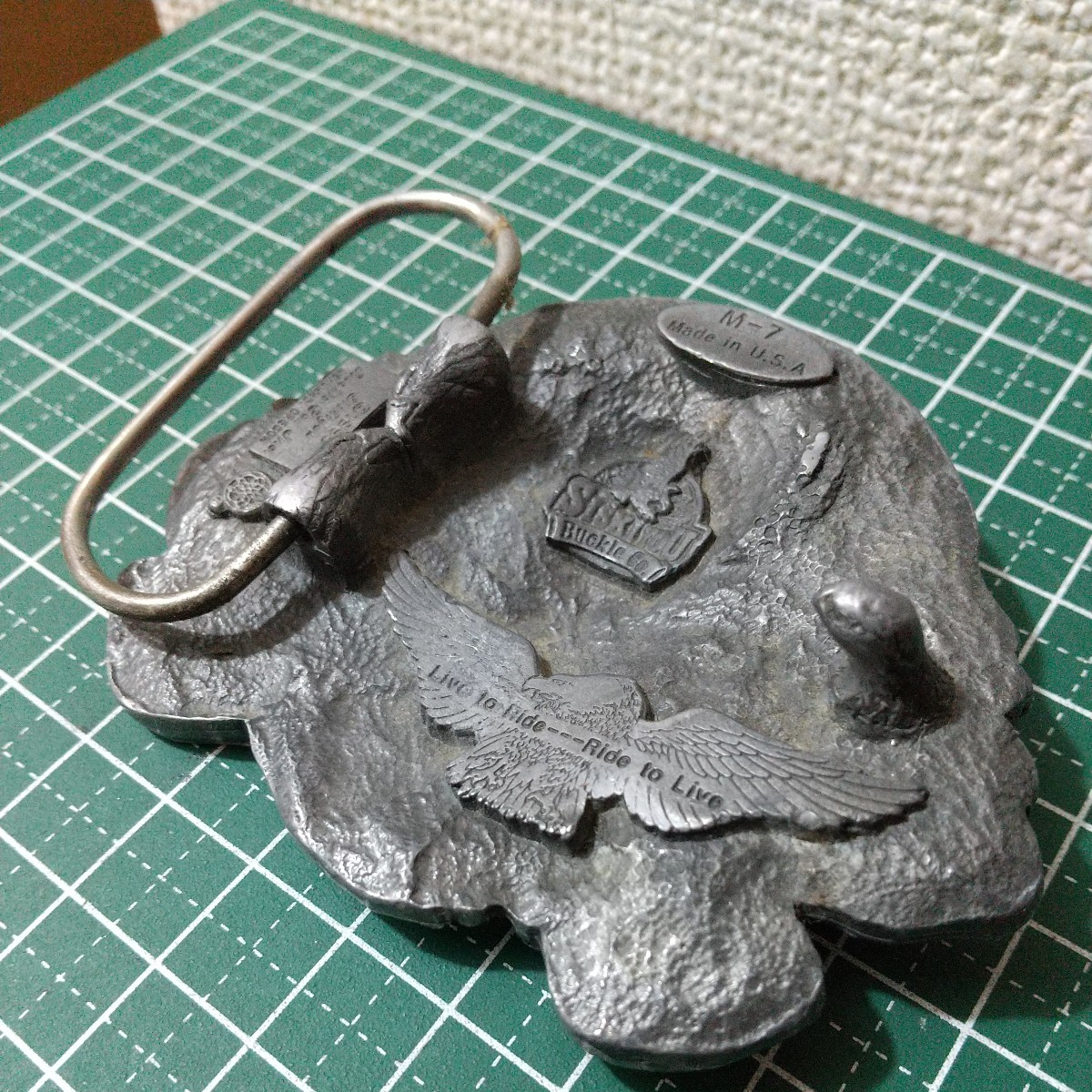 ■バックル ドクロ ガイコツ 髑髏 骸骨 羽 BAD TO THE BONE エンジン バイク 非鉄 真鍮 ビンテージ ベルト USA製■