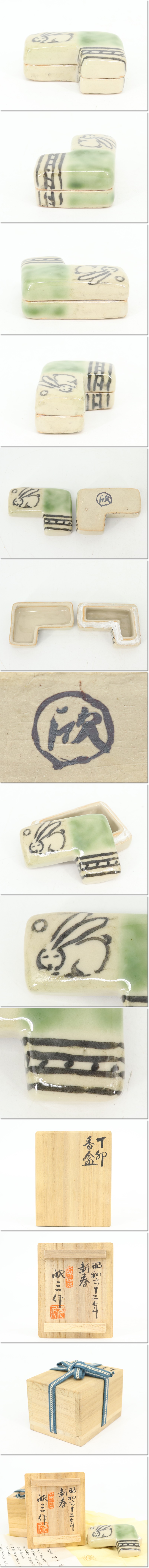 【蔵】天神窯 岡本欣三 丁卯 香盒 卯 香合 兎 干支 十二支 煎茶道具 茶道具 香道具 共箱 共布 栞 本物保証 Y1227 收藏