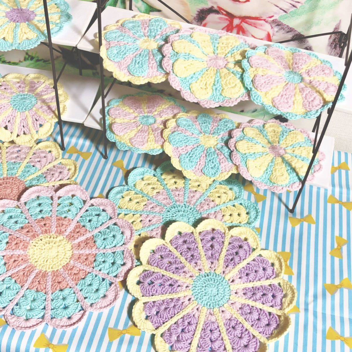 【レトロ編み物】昭和レトロ マルチカバー マット 手編み ハンドメイド お花マット K