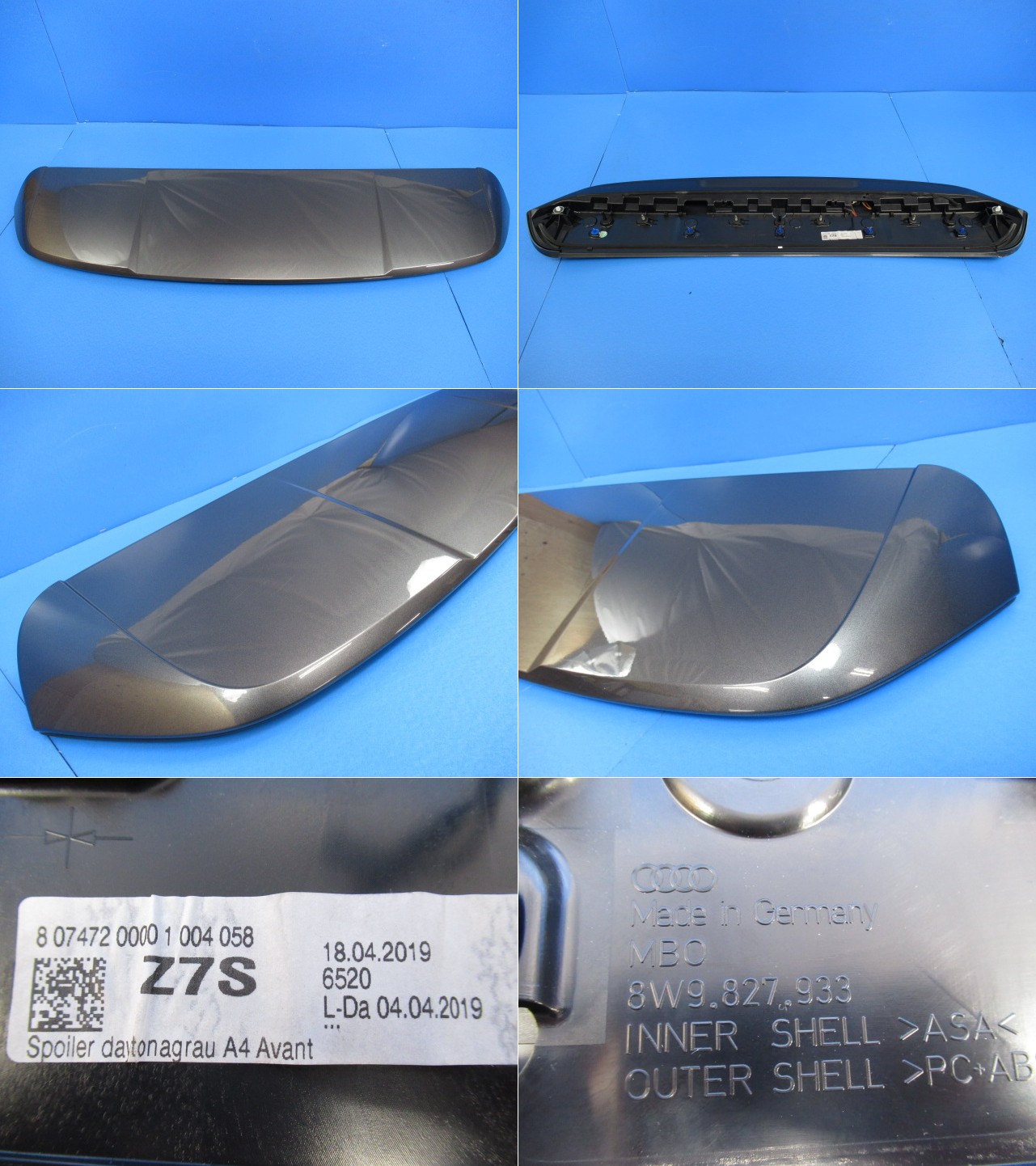 中古良品 アウディ A4 アバント 8W B9 リアウイング スポイラー 8W9.827.933 デイトナグレー Z7S (M089049) 收藏