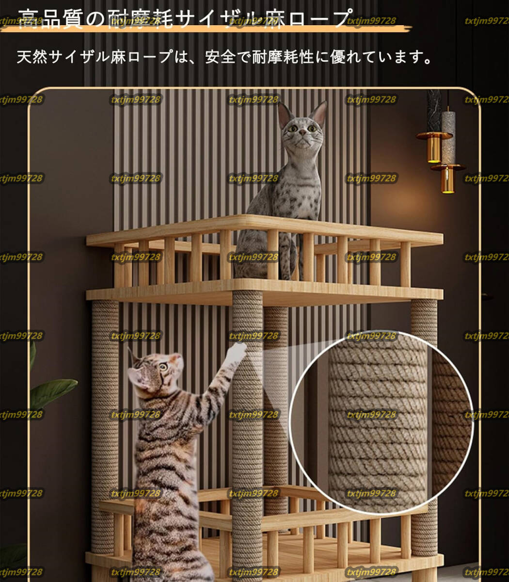 木製の猫の巣 据え置き 安定性 省スペース 猫 中型猫 多頭飼い 猫部屋 天然麻紐の爪とぎポール 猫別荘 密閉型猫ハウス 無垢材 40*40*61cm 收藏