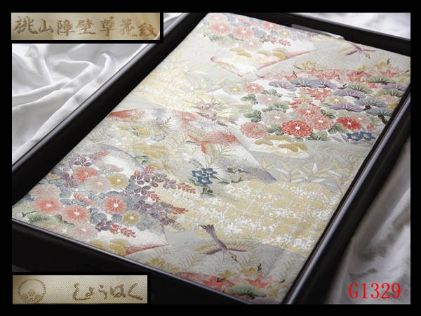 【G1329】厳選逸品 本場筑前博多織 しょうはく 桃山障壁草花紋 気品豊かに 正絹純金糸六通高級美術袋帯 ◇検◇簪着物名古屋帯帯締め 收藏