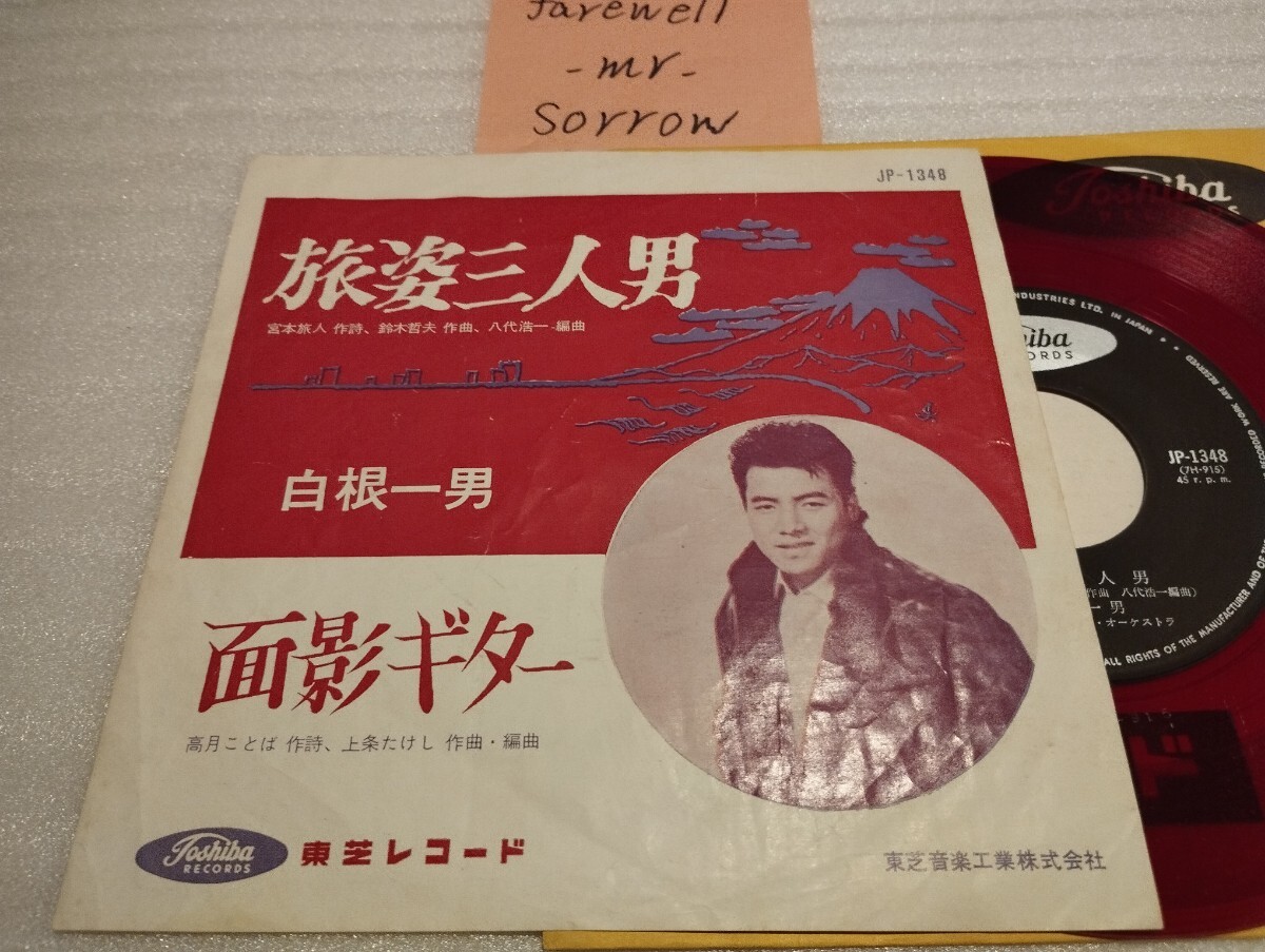 白根一男 旅姿三人男 赤盤シングル 東芝レコード JP-1348 宮本旅人 鈴木哲夫 八代浩一 面影ギター 上條たけし 高月ことば 昭和歌謡 7インチ 收藏